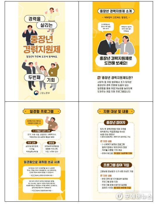'중장년 경력지원제'는 사무직 등 주된 업무에서 퇴직 후 경력전환을 위해 자격을 취득했거나 직업 훈련을 이수한 50대 중장년에게 ‘경력전환형 일경험’ 기회를 제공하는 사업으로, ’25년 시범 시행 후 ’26년에 2,000명 규모로 추진된다.