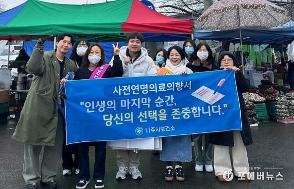 나주시보건소는 10일 영산포 풍물시장에서 시민들을 대상으로 사전연명의료의향서 제도 홍보 캠페인을 벌였다고 밝혔다.