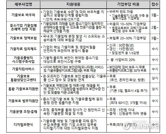 사업별 자세한 내용은 기술보호 통합 포털 기술보호울타리에서 확인할 수 있다.