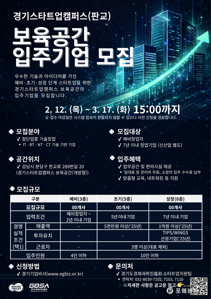 신청은 오는 12일부터 다음 달 17일 오후 3시까지 경기기업비서를 통해 온라인으로 접수할 수 있다. 최종 선정 결과는 4월 중 개별 통보되며, 선정 기업은 5월부터 입주를 시작할 예정이다.