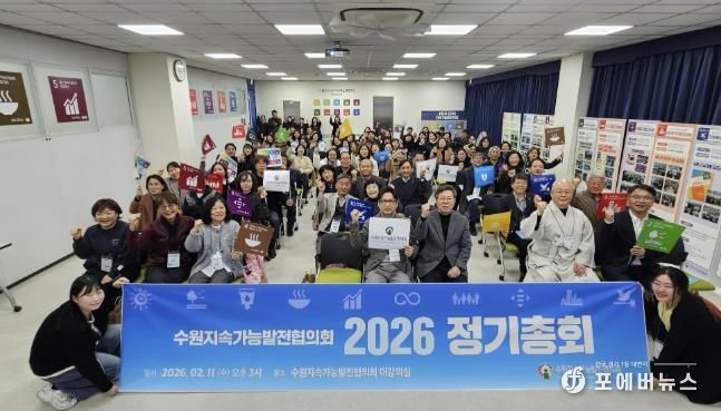 [ 포에버뉴스 김경순 기자 ] 수원시지속가능발전협의회는 11일 더함파크 대강의실에서 ‘2026년 정기총회’를 열고, 2025년 사업 추진 결과를 공유했다. 또 2026년 사업계획과 예산안을 심의·의결했다.