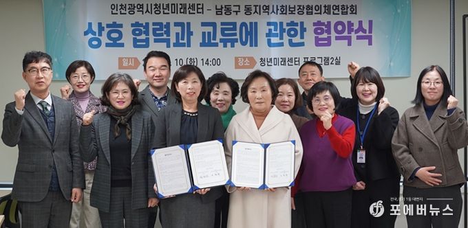 [ 포에버뉴스 김경순 기자 ] 인천시사회서비스원 소속 인천시청년미래센터는 최근 남동구 동 지역사회보장협의체 연합회와 업무협약하고 가족돌봄, 고립은둔청년 발굴과 지원에 나선다고 12일 밝혔다.