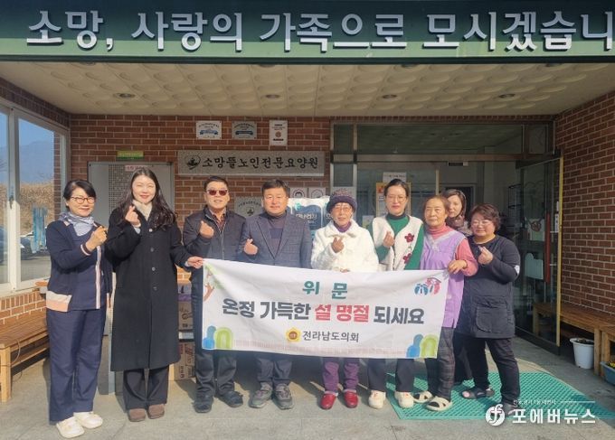 [ 포에버뉴스 오명숙 기자 ] 전라남도의회는 다가오는 설 명절을 맞아 2월 12일 함평군 소재 사회복지시설을 방문해 명절 인사를 전하고 위문 활동을 펼쳤다.