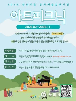 [ 포에버뉴스 박정배 기자 ] 이천시 청년일자리카페(이천시 경충대로 2701-32)는 지역 청년들에게 일상의 쉼표와 성장의 기회를 제공하는 ‘청년이룸 문화예술공연 사업’을 본격적으로 운영한다고 밝혔다.
