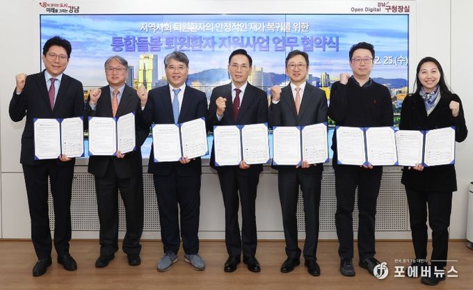 [ 포에버뉴스 김경순 기자 ] 꿈이 모이는 도시, 미래를 그리는 강남구가 퇴원 이후 돌봄 공백을 줄이고 지역사회 중심의 돌봄 체계를 강화하기 위해 2월 25일 구청에서 관내 6개 의료기관과 '통합돌봄 퇴원환자 지원사업' 추진을 위한 업무협약(MOU)을 체결했다. 협약 기관은 삼성서울병원, 연세대학교의과대학 강남세브란스병원, 강남베드로병원, 나누리병원, 메드렉스병원, 강남구립행복요양병원이다.
