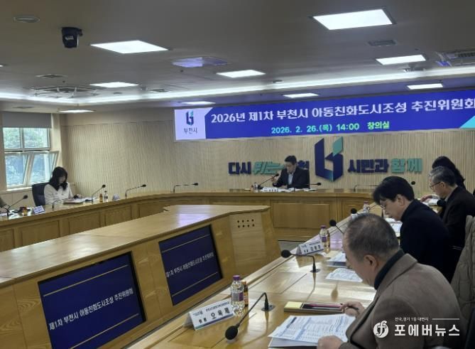 [ 포에버뉴스 김경순 기자 ] 부천시는 지난 26일 시청 창의실에서 ‘2026년 제1차 아동친화도시조성 추진위원회’를 열고 2026년 아동친화도시 추진계획과 아동친화 중점사업 선정안을 심의했다.