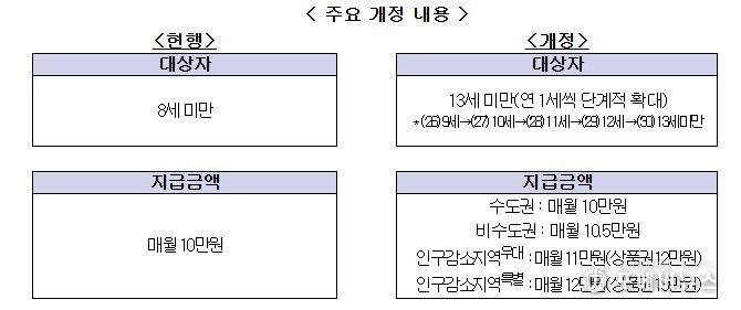 1. 아동수당 지급 대상 확대