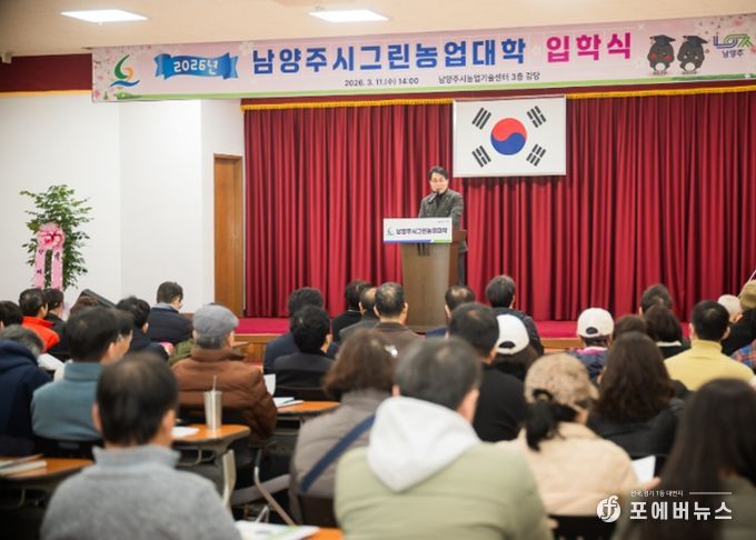 [ 포에버뉴스 김경순 기자 ] 남양주시의회는 11일 농업기술센터 3층 대강당에서 열린 2026년 남양주시그린농업대학 입학식에 참석해 신입생들에게 축하의 인사를 전했다.
