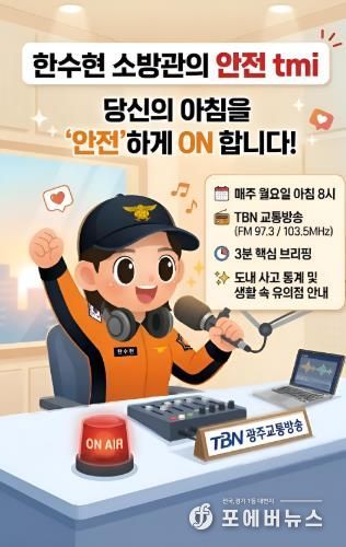 [ 포에버뉴스 오명숙 기자 ] 전남소방본부는 도민들의 안전한 일상을 위해 오는 16일부터 TBN 광주교통방송을 통해 신규 안전 홍보 코너인 ‘한수현 소방관의 안전 tmi(Trust Me Information)’를 선보인다고 밝혔다.