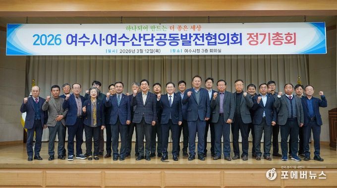 [ 포에버뉴스 오명숙 기자 ] 여수시·여수산단공동발전협의회는 지난 12일 시청 회의실에서 ‘2026년 정기총회’를 개최하고 지역사회와 산단의 공동 성장을 위한 협력 방안을 모색했다.