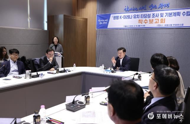 시는 16일 오전 시청 컨퍼런스룸에서 ‘광명 케이(K)-아레나 유치 타당성 조사 및 기본계획 수립 용역’ 착수보고회를 개최하고, 대한민국을 대표하는 글로벌 문화·스포츠 랜드마크 조성을 위한 구체적 계획을 논의했다.