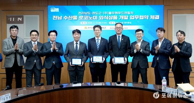 협약식에는 황기연 전남도지사 권한대행, 이범우 완도부군수, 김경순 ㈜풀무원푸드앤컬처 부사장이 참석해 상호 협력의지를 확인했다.