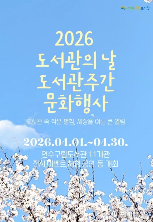 [ 포에버뉴스 김경순 기자 ] 연수구립도서관은 도서관 주간을 맞아 4월 한 달 동안 ‘도서관 속 작은 펼침, 세상을 여는 큰 열림’을 주제로 다양한 독서 문화 행사를 개최한다.