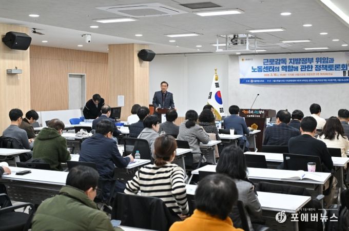 [ 포에버뉴스 김경순 기자 ] 서울시의회 기획경제위원회 이상훈 의원(더불어민주당, 강북2)은 16일 서울시의회 의원회관 제2대회의실에서 ‘노동감독 지방정부 위임과 노동센터의 역할에 관한 정책토론회’를 개최하여 최근 노동감독관 직무집행법 국회 의결에 따른 서울시의 권한 이양 준비와 자치구 노동센터와의 협력체계 구축 방안 등을 논의했다.