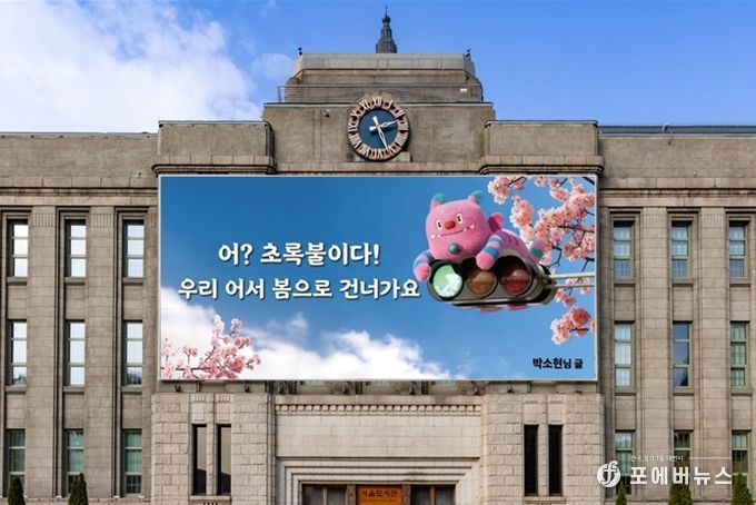시는 수상작 중 “어? 초록불이다! 우리, 어서 봄으로 건너가요.” 문안을 꿈새김판에 어울리는 이미지 작업을 거쳐 봄편으로 게시했다. 문안 당선자 박소현 씨는 “신호등의 초록불을 봄의 청신호로 풀어내며 봄의 설렘을 전하고자 했다. 바쁜 일상 속 출퇴근하는 시민들이 서울광장 앞 신호등이 초록불로 바뀌는 짧은 순간, 꿈새김판을 보고 소소한 즐거움을 느끼길 바란다.”고 말했다.