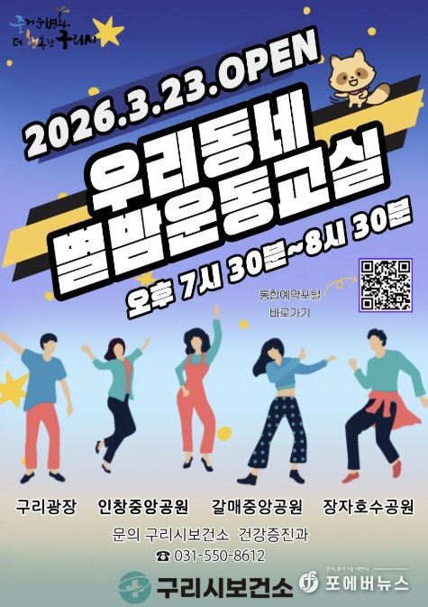 백경현 구리시장은 “저녁 시간대 누구나 부담 없이 참여할 수 있는 프로그램을 통해 시민들의 신체활동을 활성화하고 건강한 지역사회 조성에 이바지하겠다”라며 “앞으로도 시민 건강 증진을 위한 다양한 프로그램을 지속적으로 운영해 나가겠다”라고 말했다.
