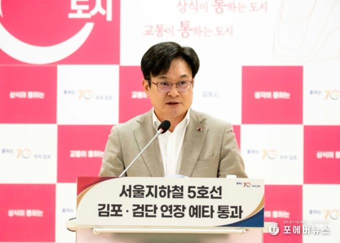 [ 포에버뉴스 김경순 기자 ] 김포시가 19일 대도시권광역교통위원회와 경기도에 서울지하철 5호선 김포·검단연장사업 행정절차의 신속 진행을 공식 요청했다. 김병수 시장은 5호선의 조기 착수를 목표로 행정력 집중에 나선다는 방침이다.