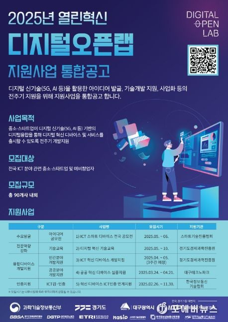 신청 대상은 경기도에 사업장을 둔 중소기업 또는 스타트업이다. 디바이스나 관련 서비스 개발 역량을 보유한 기업이라면 열린혁신 디지털 오픈랩 공식 누리집을 통해 온라인으로 신청할 수 있다.
