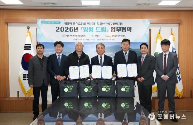 [ 포에버뉴스 김경순 기자 ] 인천광역시 계양구와 계양구지역사회보장협의체, ㈜풀무원푸드머스는 23일 저소득층 영유아와 돌봄이 필요한 노인가구의 건강한 식생활 지원을 위한 ‘영양드림’ 업무협약을 체결했다.