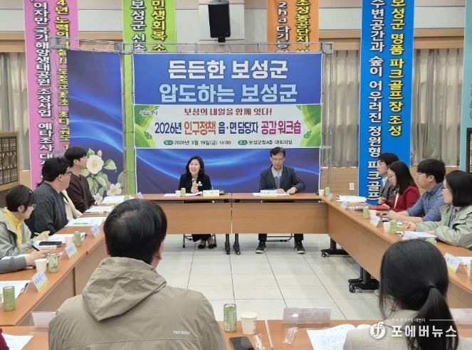 [ 포에버뉴스 오명숙 기자 ] 보성군은 지난 20일 군청 4층 대회의실에서 본청 인구정책과와 12개 읍면 인구정책 담당 공무원을 대상으로 ‘2026년 인구정책 읍면 담당자 공감 워크숍’을 개최했다고 밝혔다.