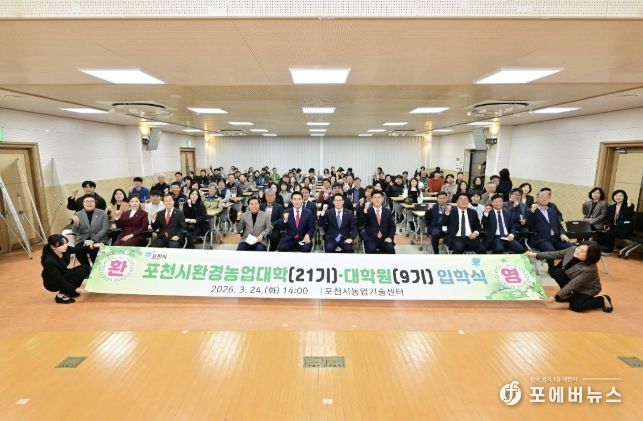 [ 포에버뉴스 김경순 기자 ] 포천시는 지난 24일 포천시농업기술센터 대강당에서 신입생과 내빈 등 100여 명이 참석한 가운데 ‘2026학년도 포천시환경농업대학(22기) 및 대학원(9기) 입학식’을 개최했다.