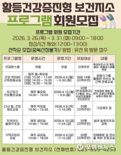 프로그램 신청 등 더욱 자세한 내용은 황등건강증진형 보건지소로 문의하면 된다.