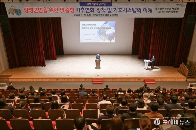 [ 포에버뉴스 김경순 기자 ] 양평군은 지난 27일 양평도서관 물빛극장에서 ‘세계 기상의 날’을 기념한 환경교육을 성황리에 개최했다고 밝혔다.