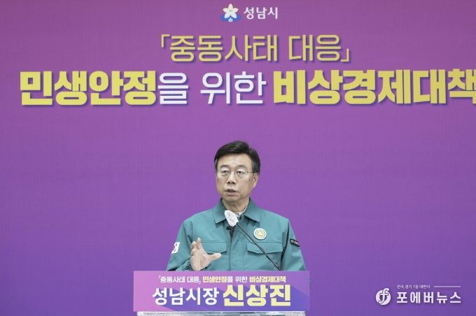 신상진 성남시장은 이날 오전 11시 시청 모란관에서 중동사태 대응 민생안정을 위한 비상경제 대책 기자회견을 열고 “중동 사태로 인한 서민 경제 부담을 완화하고, 지방정부가 앞장서 지원에 나설 수 있도록 중앙정부가 역할을 다해주기를 바란다”며 국가 재난 선포 필요성을 강조했다.