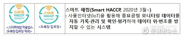 이에 식약처는 도축장 및 집유장도 스마트 해썹 적용업소로 등록할 수 있도록 스마트 해썹 등록 신청 절차·방법을 마련하고 스마트 해썹 심벌을 사용할 수 있는 우대 조치 근거 등을 마련했다.