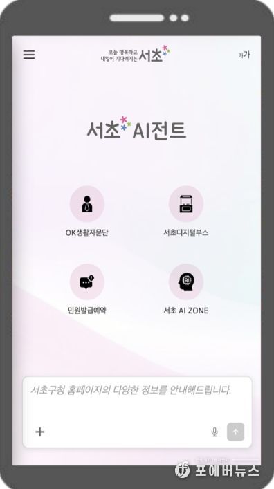 [ 포에버뉴스 김경순 기자 ] 서울 서초구는 지방자치단체 최초 행동형 AI 챗봇인 ‘서초 AI전트’의 서비스 고도화를 통해 기능 확장에 나선다고 밝혔다.