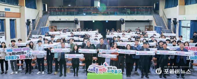 [ 포에버뉴스 김경순 기자 ] 인천 미추홀구는 1일 2026년도 2분기 직원 조회를 열고 ‘인천해사국제상사법원(이하 해사법원) 미추홀구 유치’를 위한 캠페인을 개최했다.
