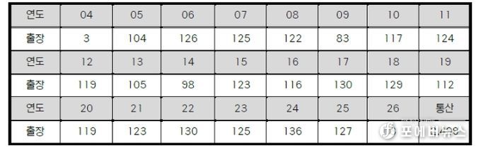 3월 31일 기준 통산 출장 경기 수 10위 이내의 선수 중 강민호가 유일한 포수로 이름을 올리고 있다. 포수 포지션에도 불구하고, 철저한 자기관리로 23년차인 지금까지 단 3시즌을 제외하고 모두 100경기 이상 출장하며 꾸준함을 보여줬다.