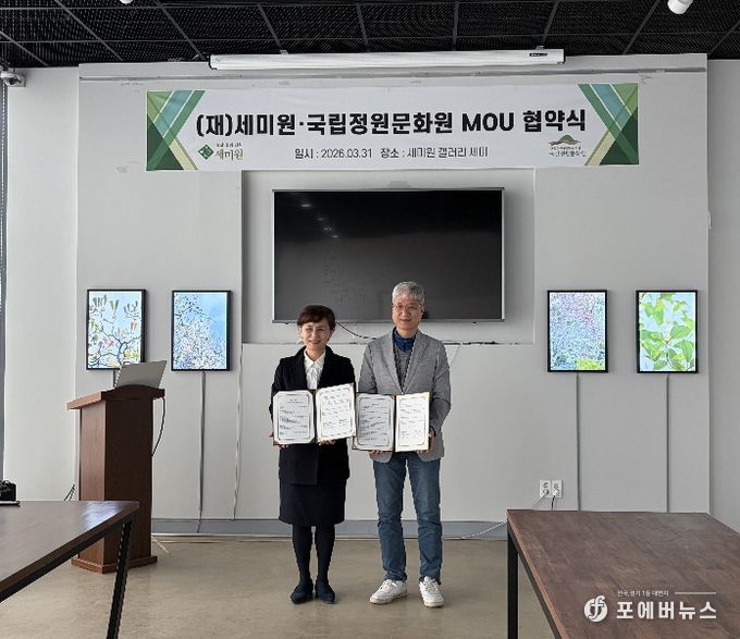 [ 포에버뉴스 김경순 기자 ] 재단법인 세미원과 국립정원문화원은 지난 3월 31일 세미원에서 상호 협력을 위한 업무협약(MOU)을 체결했다.