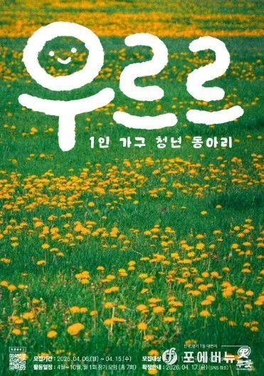 푸릇 관계자는 "우르르 동아리 활동을 통해 1인가구 청년들이 서로의 존재를 확인하고 일상의 즐거움들을 지역의 다른 청년들과 함께 찾아나서는 시간이 되길 바란다."고 전했다.