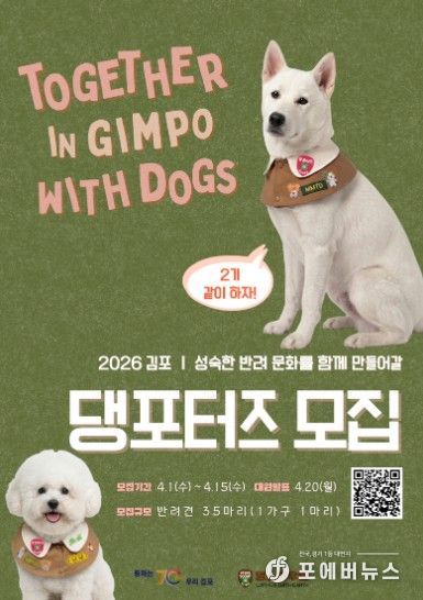 [ 포에버뉴스 김경순 기자 ] 김포시는 올바르고 책임 있는 반려문화 확산을 이끌 ‘김포 댕포터즈’를 모집한다고 밝혔다.