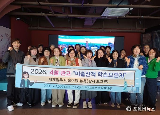 [ 포에버뉴스 김경순 기자 ] 이천시 관고동 주민자치회는 지난 1일, 뉴욕 미술관의 대표 명작들을 함께 보며 현대미술의 흐름과 미국 미술의 특징을 쉽게 이해할 수 있도록 구성한 ‘세계 일주 미술여행 뉴욕 편’을 운영했다고 밝혔다.