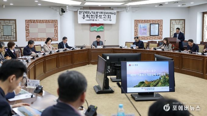 인천시 중구는 지난 1일 중구청 서별관 회의실에서 ‘인천 중구 환경계획 및 기후위기 적응대책 수립 용역 최종 보고회’를 개최했다고 밝혔다.