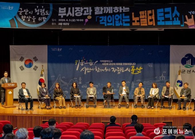 [ 포에버뉴스 이승훈 기자 ] 군산시는 3일 오후 시청 2층 강당에서 저연차 직원들과 간부 공무원들이 격식 없이 소통하는 ‘부시장과 함께하는 격의 없는 노필터 토크쇼’를 개최했다고 밝혔다.