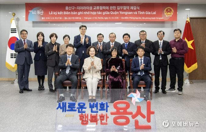 [ 포에버뉴스 김경순 기자 ] 서울 용산구가 3월 31일 베트남 지아라이성과 교류협력 확대를 위한 업무협약(MOU)을 체결하고, 자매도시 간 실질적인 국제교류를 본격 추진한다.