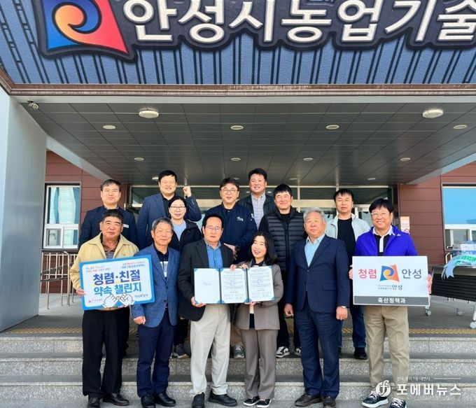 [ 포에버뉴스 김경순 기자 ] 안성시 농업기술센터 축산정책과가 지역 축산단체들과 손잡고 투명하고 공정한 행정 실현을 위한 '청렴 행보'에 본격적으로 나섰다. 시는 지난 4월 2일, 안성시 축산단체협의회와 함께 청렴 협약식을 개최하고 신뢰받는 축산행정 구현을 위한 협력 기반을 강화했다고 밝혔다.
