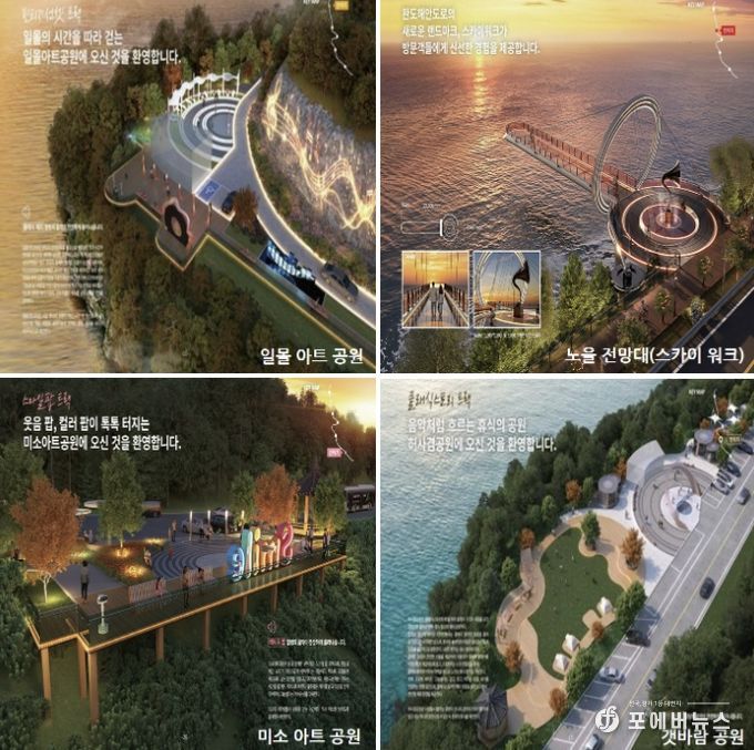 사업은 4개년(‘24~’27)간 추진하며, 1단계는 ‘일몰 아트 공원’, 2단계는 ‘갯바람 공원과 미소 아트 공원’, 3단계는 ‘해안 경관길’(노을 전망대)을 순차적으로 조성한다.