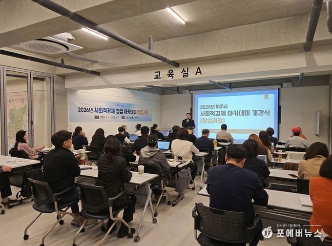 [ 포에버뉴스 김경순 기자 ] 파주시는 지난 7일 금촌어울림센터에서 '2026년 파주시 사회적경제 창업아카데미(창업과정)' 개강식을 열고, 본격적인 교육에 돌입했다.