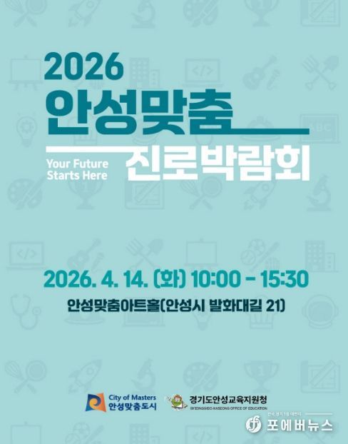 [ 포에버뉴스 김경순 기자 ] 안성시는 오는 4월 14일 안성맞춤아트홀에서 관내 청소년들의 자기주도적 미래 설계를 지원하기 위한 ‘2026 안성맞춤 진로박람회’를 개최한다고 밝혔다.