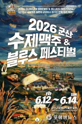 [ 포에버뉴스 이승훈 기자 ] 군산시가 오는 6월 12일부터 14일까지 3일간 군산 근대역사박물관 및 내항 일원에서 ‘2026 군산 수제맥주 & 블루스 페스티벌’을 개최한다고 밝혔다.