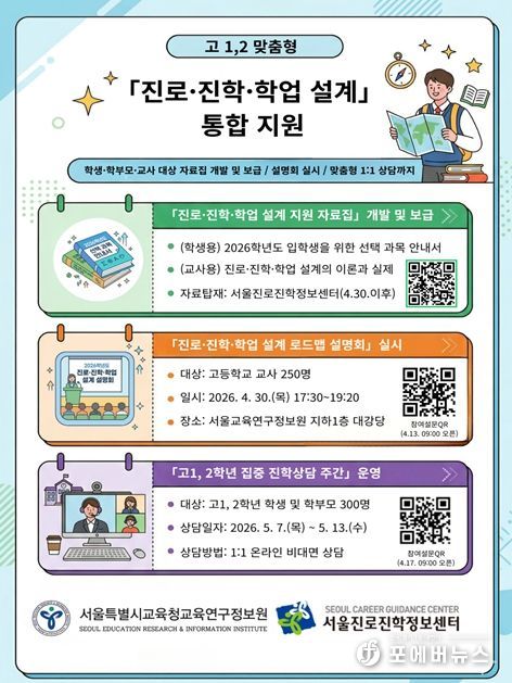설명회는 4월 30일 서울교육연구정보원에서 개최하며, 진로 탐색부터 학업 설계, 진학 지도까지 현장에서 즉시 적용가능한 가이드를 제공한다.