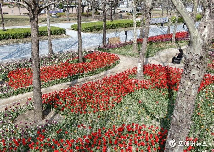 지난해 가을에 식재한 9만본의 튤립, 수선화를 포함해 총 13만6,000본의 형형색색 봄꽃이 만개했다.