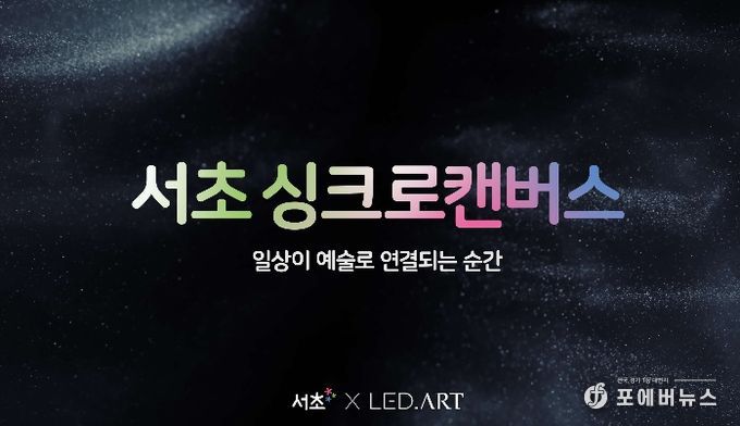[ 포에버뉴스 김경순 기자 ] 서울 서초구는 구민이 일상 속에서 자연스럽게 예술을 만날 수 있도록 미디어아트를 지역 곳곳에 동시 송출해 도심 한복판을 미디어아트 갤러리로 조성하는 '서초 싱크로 캔버스' 운영에 나선다고 밝혔다.