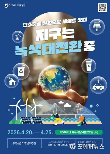 특히 올해 기후변화주간행사는 ‘지구는 녹색대전환 중. 탄소중립 실천으로 세상을 잇다’라는 메시지를 중심으로 시민 참여형 프로그램이 진행될 계획이다.