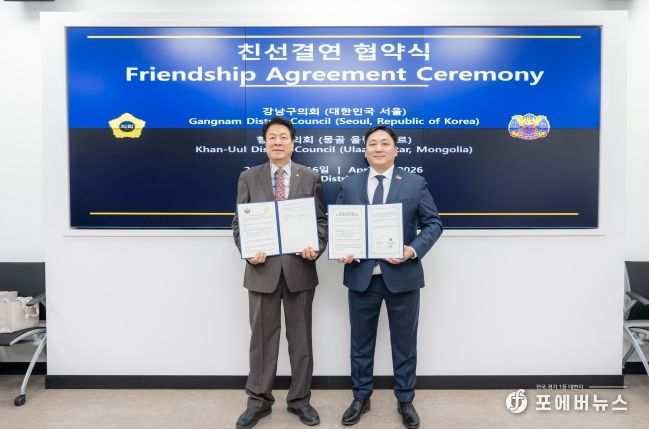 [ 포에버뉴스 김경순 기자 ] 강남구의회는 16일 오전 강남구의회를 내방한 몽골 항올구시민대표회의(의장 바트-오르길) 대표단을 접견하고 협약을 체결했다.