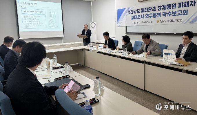 [ 포에버뉴스 오명숙 기자 ] 전라남도는 일제 강제 동원 피해 진상규명과 국가 차원의 보상지원 건의를 위해 17일 도청에서 밀리환초 강제 동원 피해자 실태조사 연구용역 착수보고회를 개최했다.